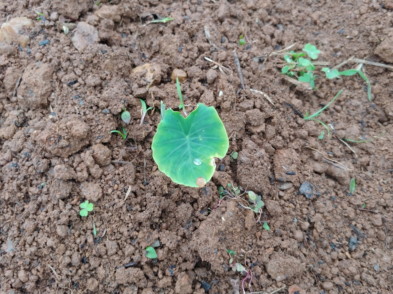 이건 토란. 흙에서 자라는 연꽃인가요. 빗방울이 너무 예쁘게 맺혀있다. 잎 들춰보면 엄지공주 있을 거 같아.